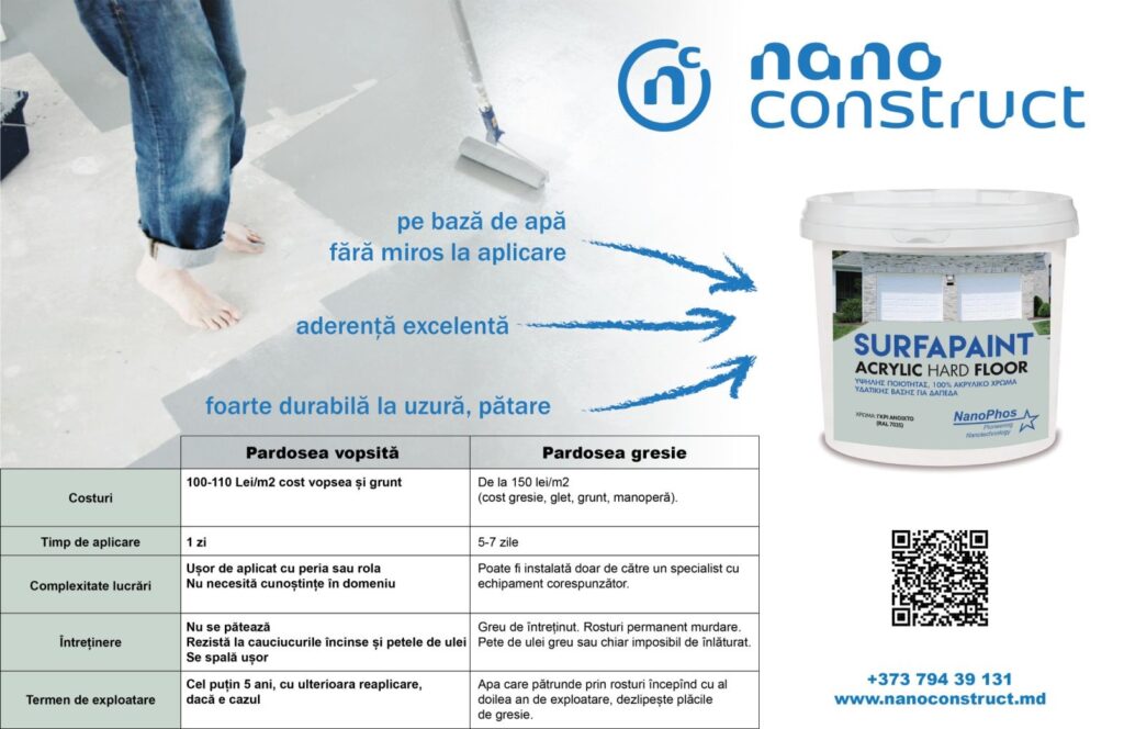 Aplicabilitatea SurfaPaint® Acrylic Hard Floor, durabilitatea și rezistența la pătare se datorează tehnologiei ce îmbină acțiunea rășinoasă și inovația adusă de nanotehnologie. SurfaPaint® Floor Paint combină proprietățile formulei rășinoase, ce conferă rezistență excelentă, specifică poliuretanului, cu proprietățile de legare și umectare specifice emulsiilor acrilice. La aplicare se formează un strat-film dur și rezistent. Rezultatul final combină funcționalitatea unică a unui strat ușor de curățat, dur și rezistent la uzură. Concret, stratul de SurfaPaint® Floor Paint rămâne curat, fără grăsimi, uleiuri sau substanțe chimice, păstrând aspectul estetic original al suprafeței vopsite. Durabilitatea acoperirii permite traficul pietonal și traficul vehiculelor ușoare.